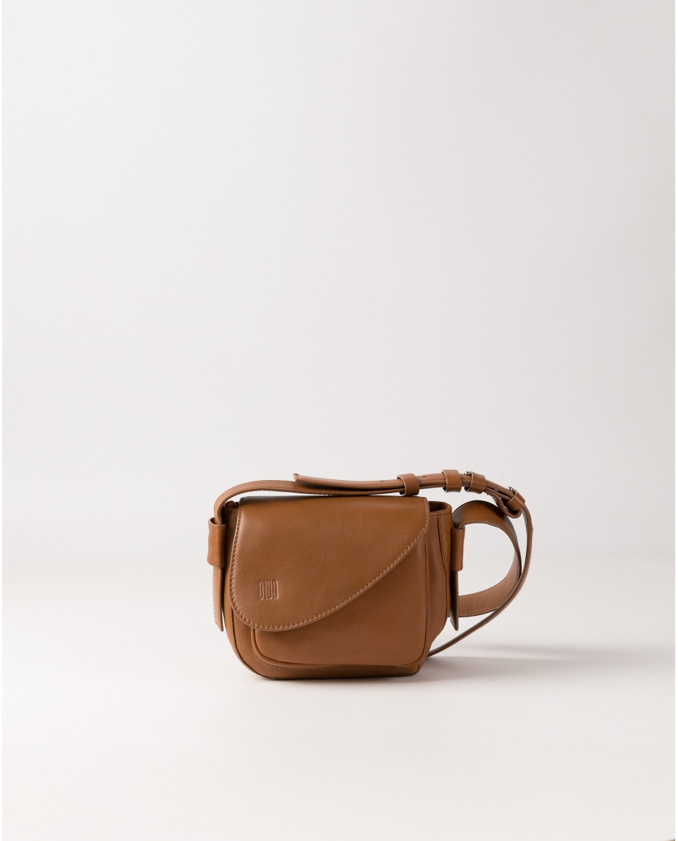 Bossa bandolera de pell bovina rentada. Bandolera regulable. Tancament de solapa amb tancament magnètic. Múltiples butxaques exteriors i interiors. Folre de cotó.