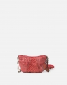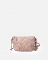 Bandolera de pell de boví rentada i trenada a mà. Patch work de diferentes tècniques de trenats, cordes, fil lurex i tatxes. Tancament de cremallera, bandolera de pell i cadena extraïble. Butxaques internes i externes i folre de cotó.