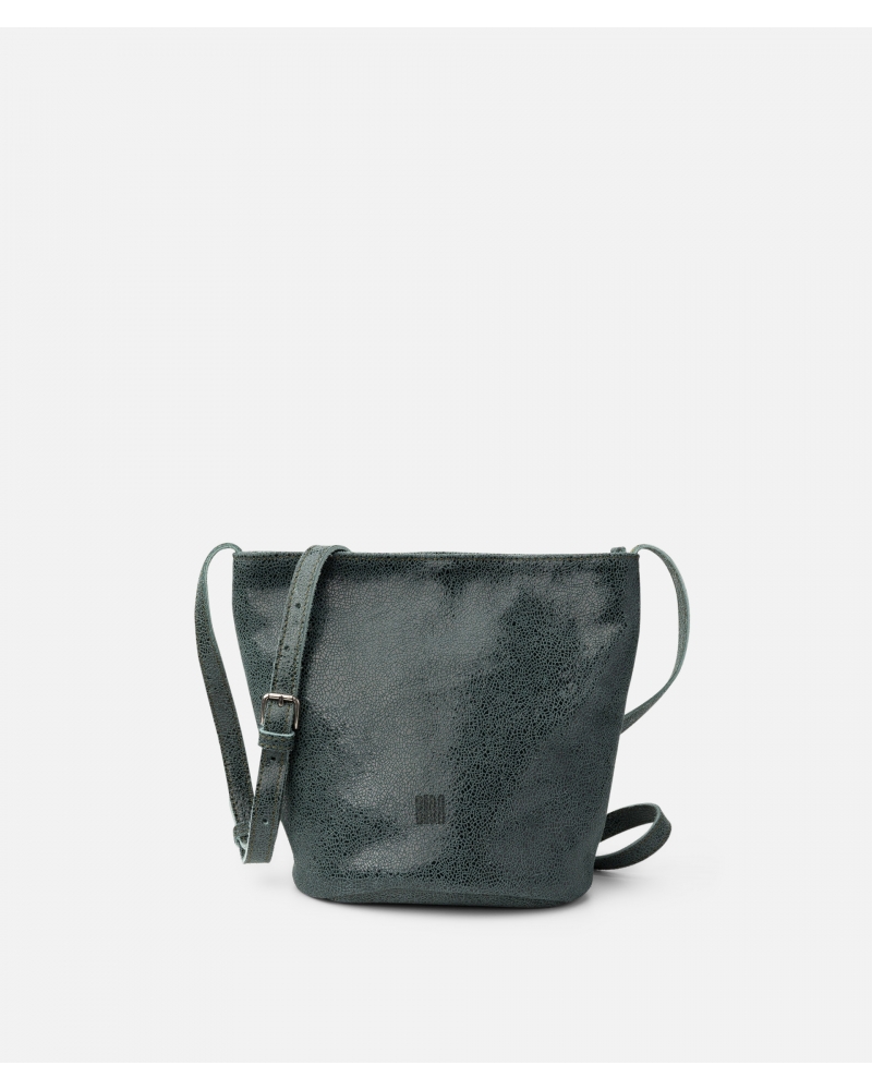 Bossa bandolera de pell bovina amb làmina craquelada que dona un efecte brillant a dos tons. Bandolera regulable. Tancament amb cremallera. Butxaques interiors. Folre de cotó.
