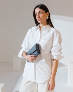 Bandolera de pell de boví en format rectangular. Bandolera regulable, solapa amb botó i cremallera. Butxaques internes i folre de cotó.