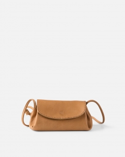Bossa bandolera de pell vacuna rentada. Tancament amb solapa i botó. Tres compartiments, un dels quals es tanca amb cremallera. Bandolera regulable. Butxaca interna. Folre de cotó.