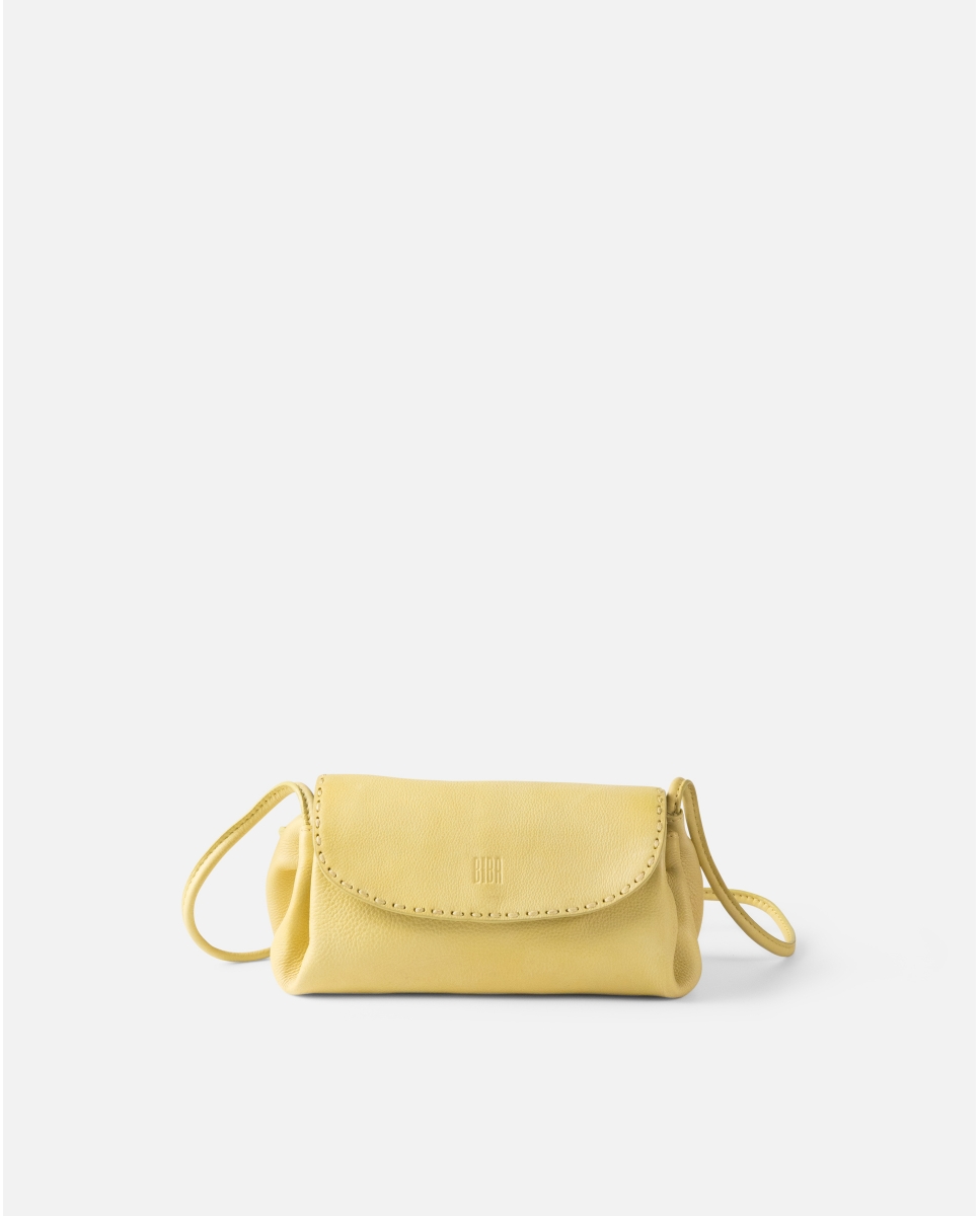 Bossa bandolera de pell vacuna rentada. Tancament amb solapa i botó. Tres compartiments, un dels quals es tanca amb cremallera. Bandolera regulable. Butxaca interna. Folre de cotó.