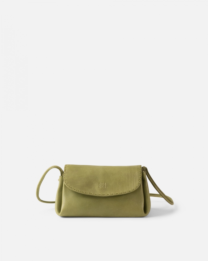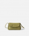Bossa bandolera de pell vacuna rentada. Tancament amb solapa i botó. Tres compartiments, un dels quals es tanca amb cremallera. Bandolera regulable. Butxaca interna. Folre de cotó.