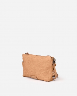 Cross bag pla de lli, 2 nanses extrables: una de pell, i una altra de lli amb brodat. Butxaques internes, tancament amb cremallera i folre de cot¢.