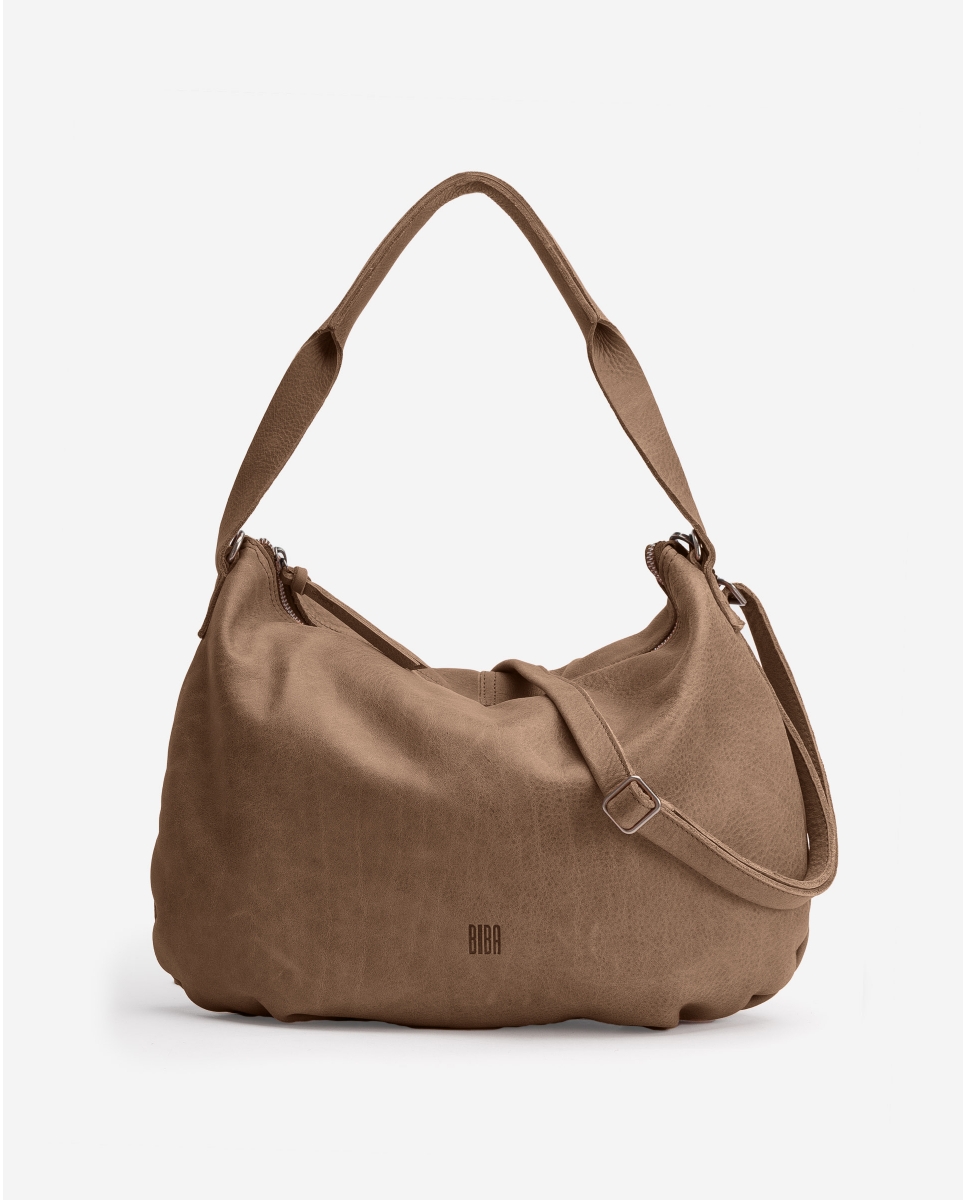 Bossa amb tancament de cremallera una nansa, una bandolera regulable i extraïble i butxaques al seu interior.