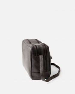 Bossa de pell natural amb tancament de cremallera, doble compartiment i bandolera regulable.