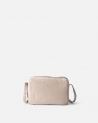 Bossa de pell natural amb tancament de cremallera, doble compartiment i bandolera regulable.
