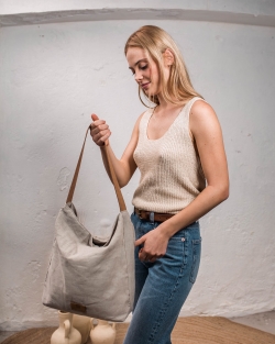 Hobo de lli, nanses de pell i butxaques externes i internes. Tancament amb cremallera i folre de cot¢.