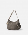 Mini hobo de pell rentada de curtició vegetal i trenada a mà. Una nansa, bandolera regulable i extraïble i tancament amb cremallera. Sense folre pero amb butxaca interior de cotó.