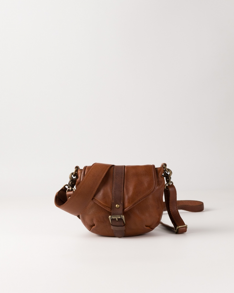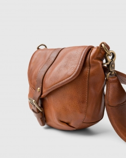 Bossa bandolera de pell vacuna rentada. Tancament amb solapa i cremallera. Nansa despatlla extraïble. Bandolera regulable i extraïble. Butxaques externes i internes. Folre de cotó.