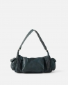 Hobo de pell vacuna rentada. Tancament amb cremallera. Bandolera regulable i extraïble. Múltiples butxaques externes i internes. Folre de cotó.