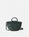 Bossa de mà de pell vacuna rentada. Nanses de mà folrades en pell. Tancament amb cremallera. Bandolera regulable i extraïble. Butxaques externes i internes. Folre de cotó.