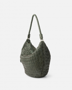 Hobo mitjà de pell bovina rentada, trenada i troquelada. nansa . Tancament amb cremallera. Butxaques interiors. Folre de cotó.