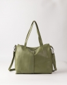 Shopper de pell bovina. Bandolera regulable i extraïble, tancament amb cremallera, butxaques externes i internes, i sense folre.