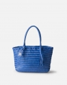 Shopper de pell vacuna trenada. Tancament amb cremallera. Butxaques internes. Folre de cotó.