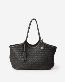 Shopper extra gran de pell vacuna trenada. Tancament amb cremallera. Butxaques internes. Folre de cotó.