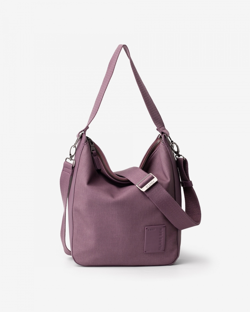 Bossa Hobo eleborada amb material reciclat efecte canvas. Butxaca la part del darrera amb tancament de cremallera. Bandolera regulable i extraïble. Folre interior de cotó reciclat. Bossa amb tancament de cremallera.