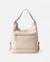 Bossa / motxilla de pell. Nanses regulables i tancament de cremallera.