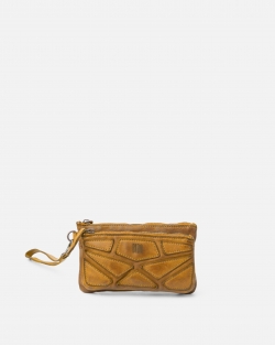 Bitlleter de pell bovina rentada i trenada. Destaca el patchwork de pell a la part frontal. nansa de mà 'clutch' extraïble. Tancaments amb cremallera. Compartiments per a bitllets, targetes i monedes. Sistema de seguretat RFID.
