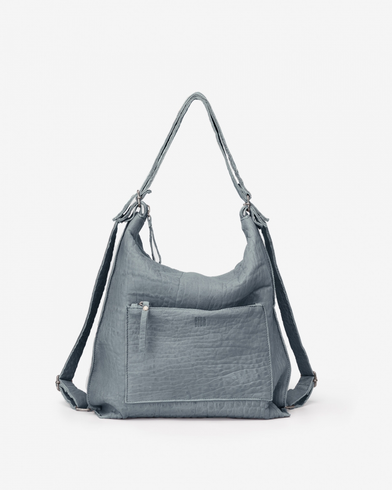 Vegetable and locally-tanned sheep leather backpack, convertible into a hobo bag. Zip closure, external and internal pockets, and non-inner lining.