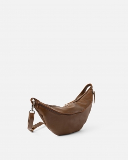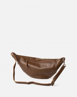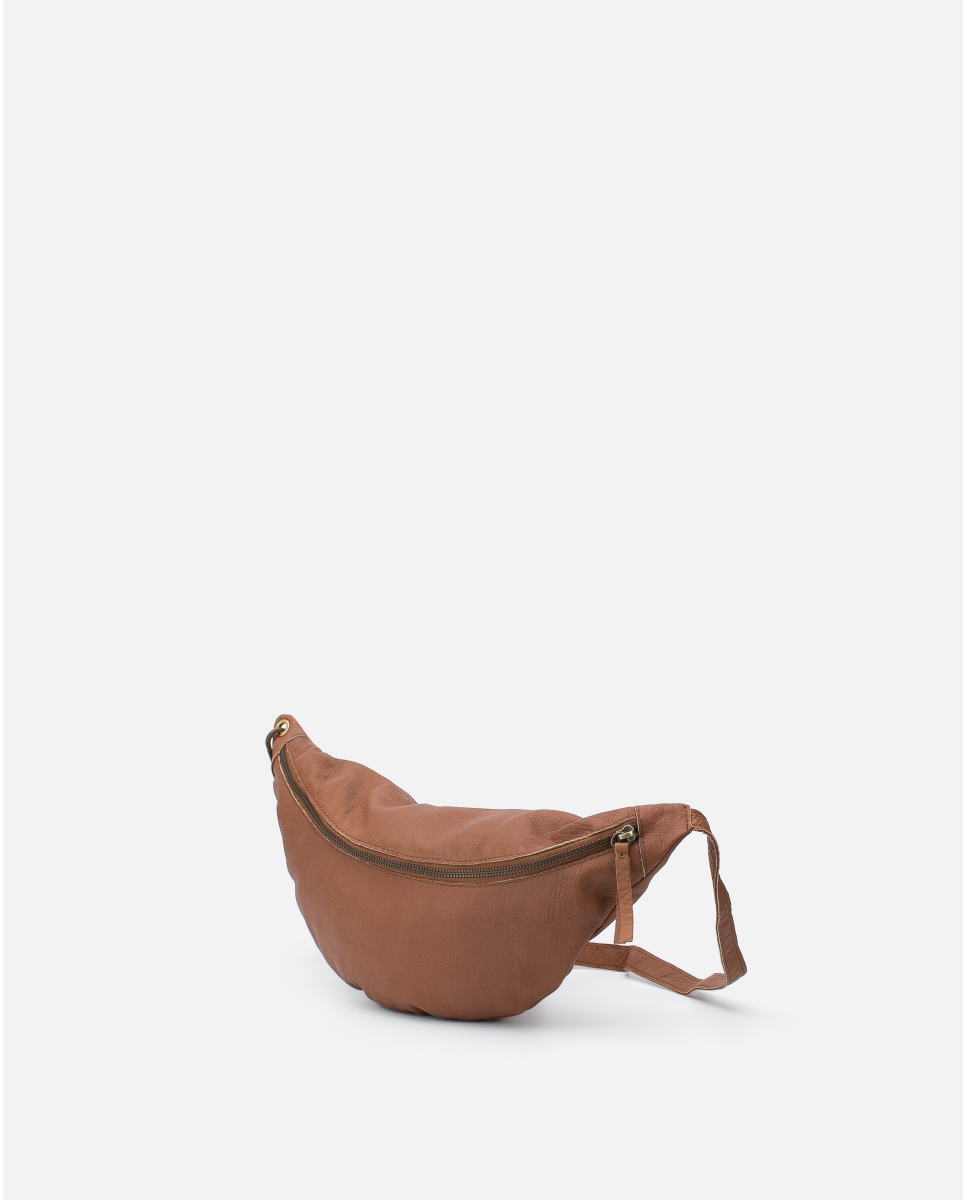 Sheep leather waist bag. Adjustable and removable shoulder strap, zip closure and one external pocket.