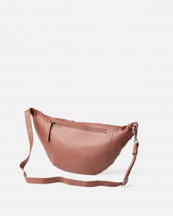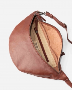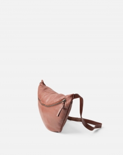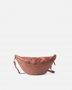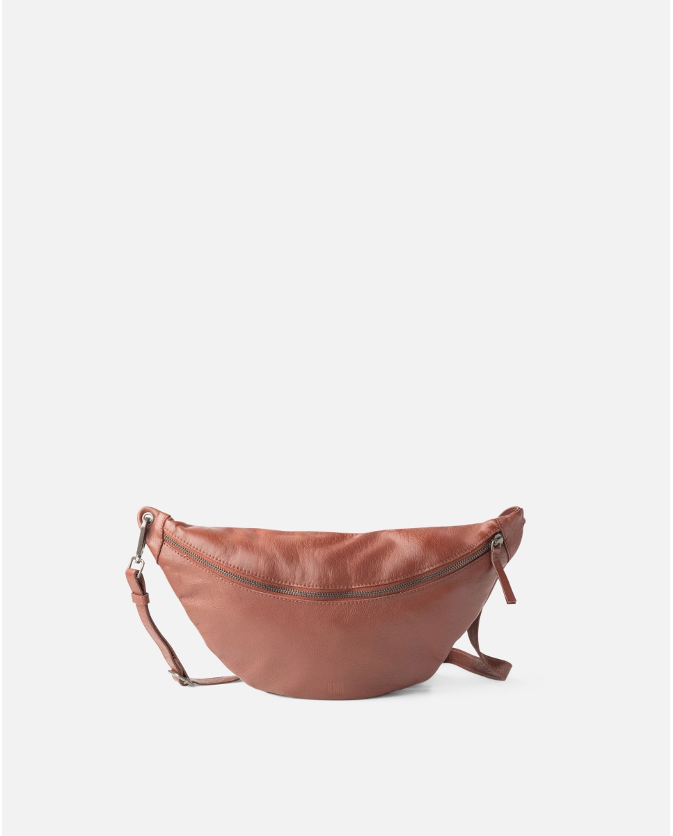 Sheep leather waist bag. Adjustable and removable shoulder strap, zip closure and one external pocket.