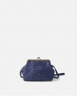 Washed, vegetable-tanned, and hand-braided cowhide leather cross bag. Frame closure, adjustable shoulder strap, internal pockets, and cotton lining.