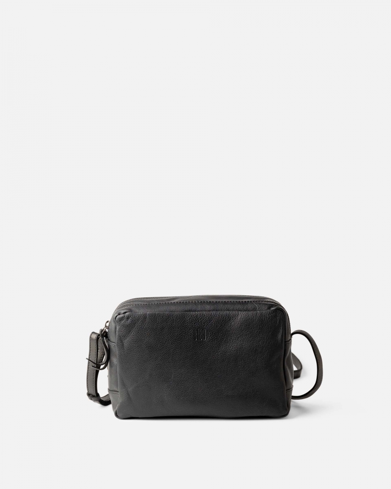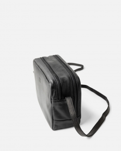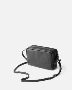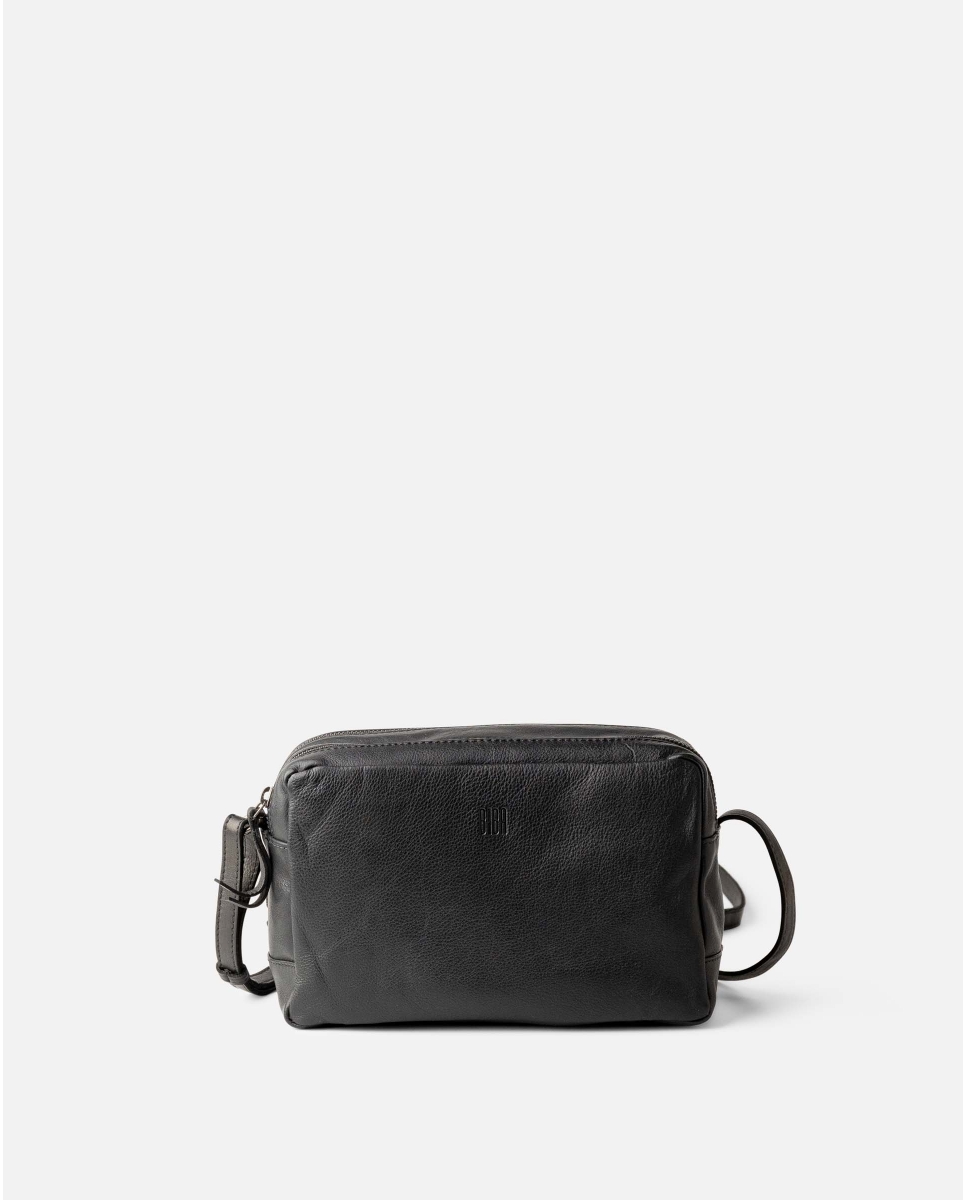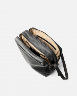 Natural leather bag with zip closure and adjustable shoulder strap.
