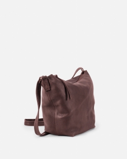 Natural leather bag with zip closure and adjustable shoulder strap.
