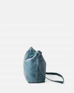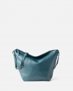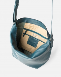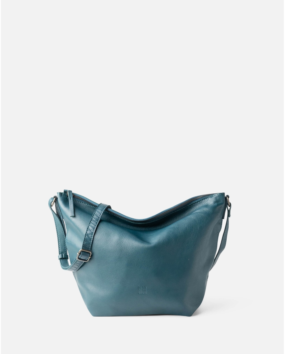 Natural leather bag with zip closure and adjustable shoulder strap.