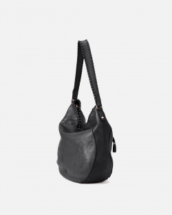 Washed and vegetable-tanned cowhide hobo. Characteristic stitching on the upper part of the bag and on the shoulder strap. Adjustable and removable shoulder strap. Zip closure, external and internal pockets, and cotton lining.