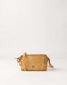 Washed and perforated cowhide crossbody bag. Two zippered compartments. Adjustable strap. Cotton lining.