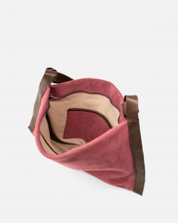 Water-repellent suede hobo. Shoulder strap. Zip closure. Internal pockets. Cotton lining.