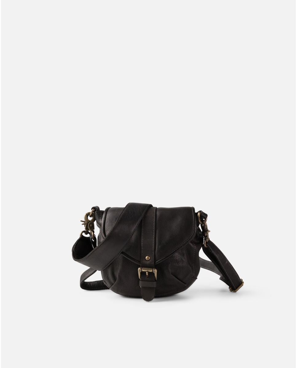 Washed cowhide leather crossbody bag. Flap and zip closure. Detachable shoulder strap. Adjustable and detachable crossbody strap. External and internal pockets. Cotton lining.