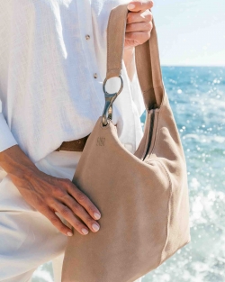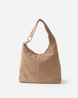 WATER-REPELLENT SUEDE. Water-repellent suede leather hobo. Shoulder strap. Zip closure. Internal pockets. Cotton lining.