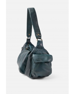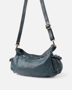 Washed cowhide leather hobo bag. Zip closure. Adjustable and detachable crossbody strap. Multiple external and internal pockets. Cotton lining.