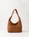 Washed and braided cowhide leather hobo bag crafted without seamsmade from a single piece of interwoven leather. Magnetic closure. Interior pocket. Unlined.