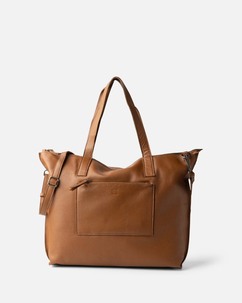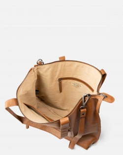 Engraved and 100% organic sheep leather shopper bag. Two handles and adjustable and removable shoulder strap. Front pocket.