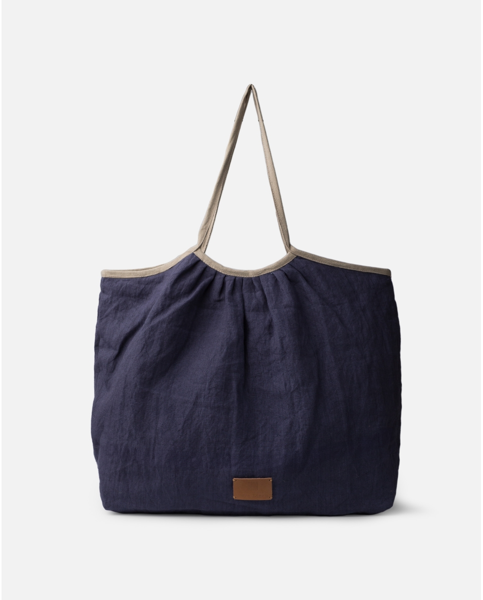 Reversible linen shopper, one side is plain, the other is checkered. Internal pocket. No closure system.
