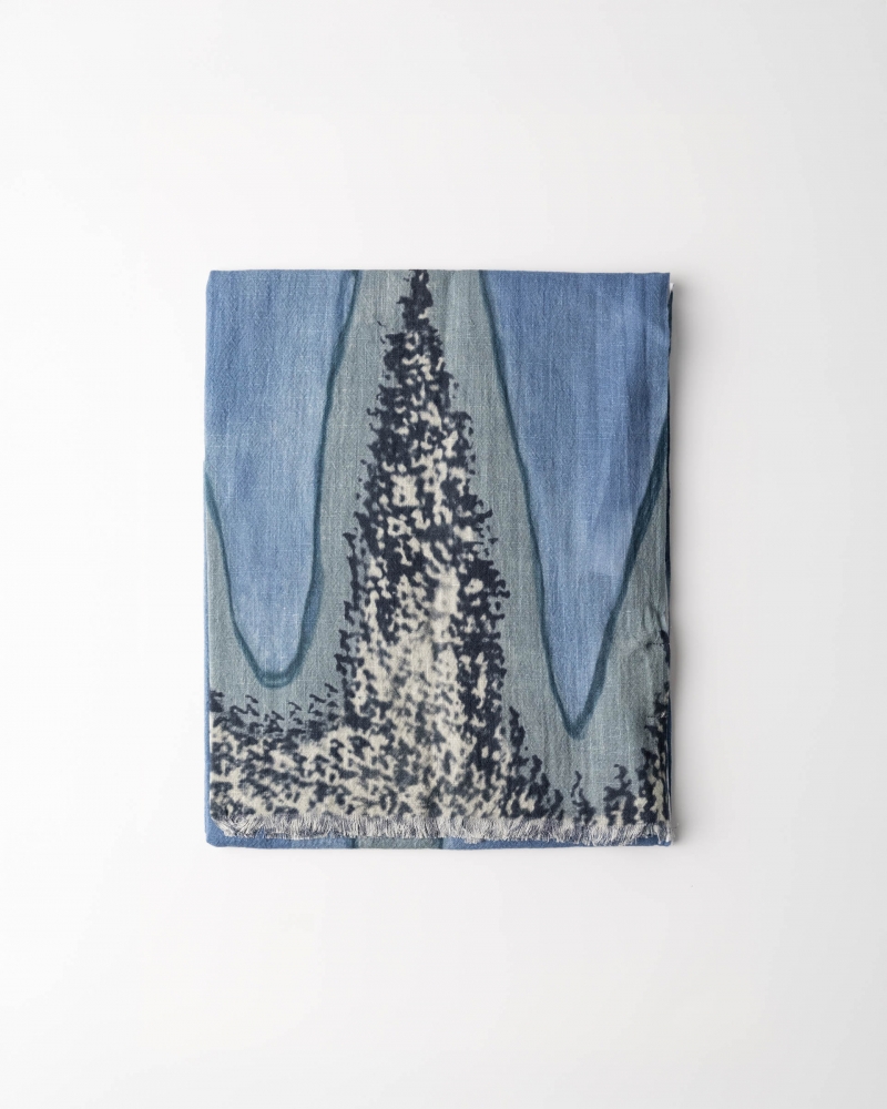 HAND-PAINTED FOULARD. Rectangular scarf made of 100% cotton with an irregular texture.