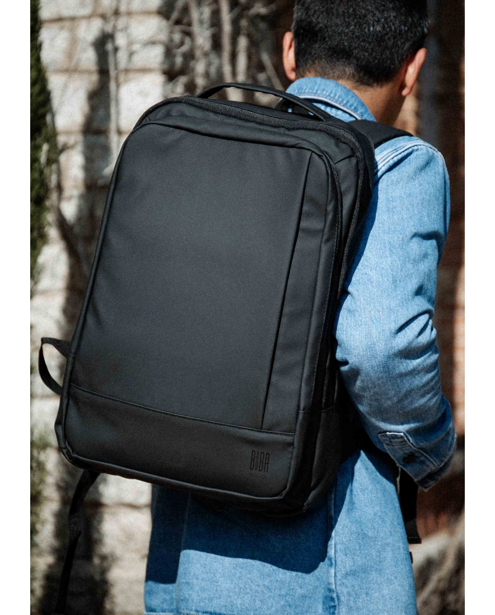 Unisex backpack with zip closure, one carry handle and two adjustable handles. Zippered pocket on the front and multiple inside pockets. Backpack extensible to 44 x 31 x 20, perfect for travelling.