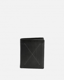 Vertical wallet in natural leather with stitching detail on the front. Several departments for cards and spaces for tickets.