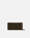 Washed, and vegetable-tanned sheep leather wallet. Flap-button closure, compartments for cards, bills and coins.