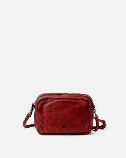 Bolso bandolera de piel vacuna lavada. Multiples compartimientos que cierran con cremallera. Bandolera regulable. Bolsillos internos. Forro de algodon.