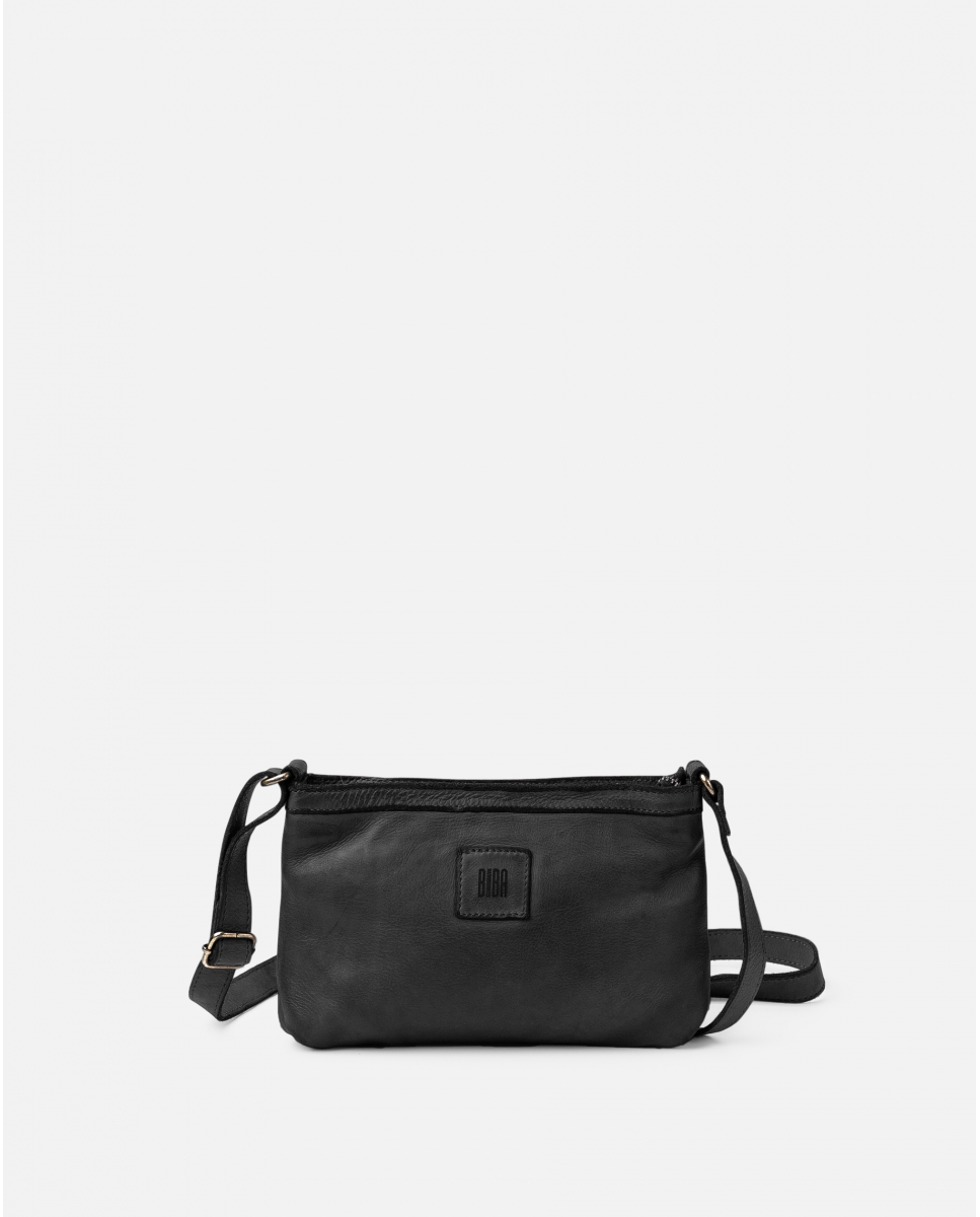 Mini bolso bandolera de piel vacuna lavada. Cierre con cremallera. Bandolera regulable. Bolsillos externos e internos. Forro de algodón.