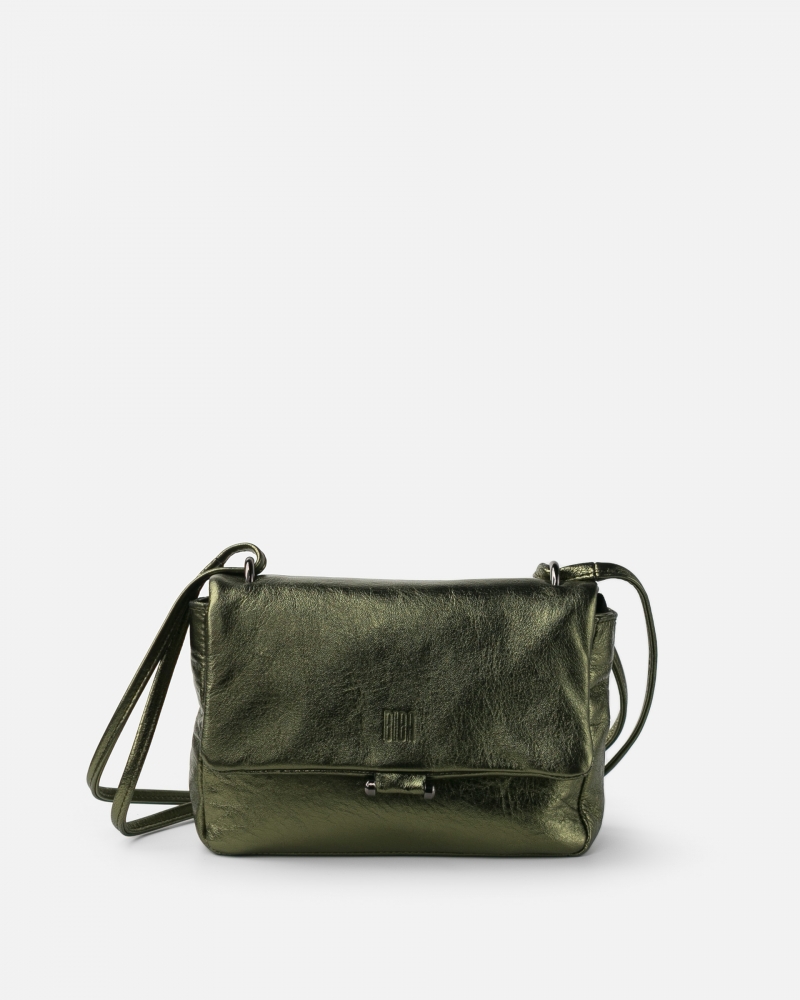 Bolso bandolera de piel natural. Asa multiposicion que permite llevarlo cruzado, o al hombro. Solapa con boton, y cierre con cremallera. Bolsillo interno para tarjetas, y forro de algodón.