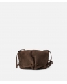 Bolso bandolera de serraje hidrofugado (repelente al agua). Bandolera regulable. Cierre con solapa y boton. Tres compartimientos internos. Forro de algodón.