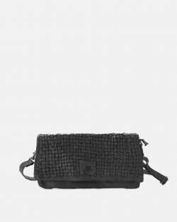 Cross bag de piel vacuna, lavada, de curtición vegetal, y trenzado a mano. Solapa, cierre con cremallera, bandolera ajustable y extraíble, bolsillos internos y externos, y forro de algodón
