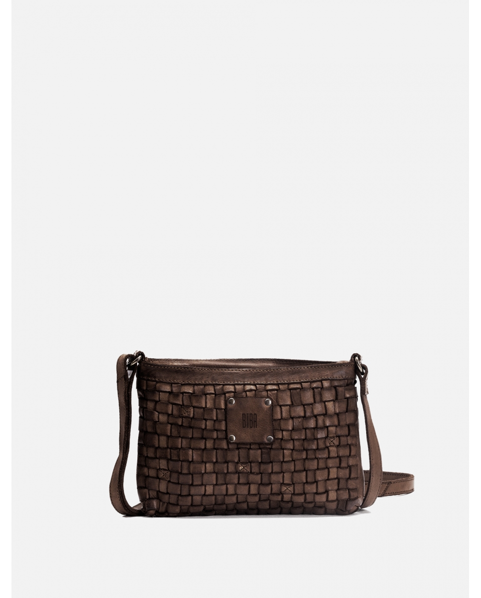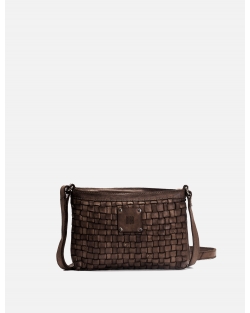 Mini cross bag de piel vacuna, lavada, de curtición vegetal, y trenzado a mano. Cierre con cremallera, bandolera justable,bolsillos internos y forro de algodón. La parte trasera del bolso es lisa.