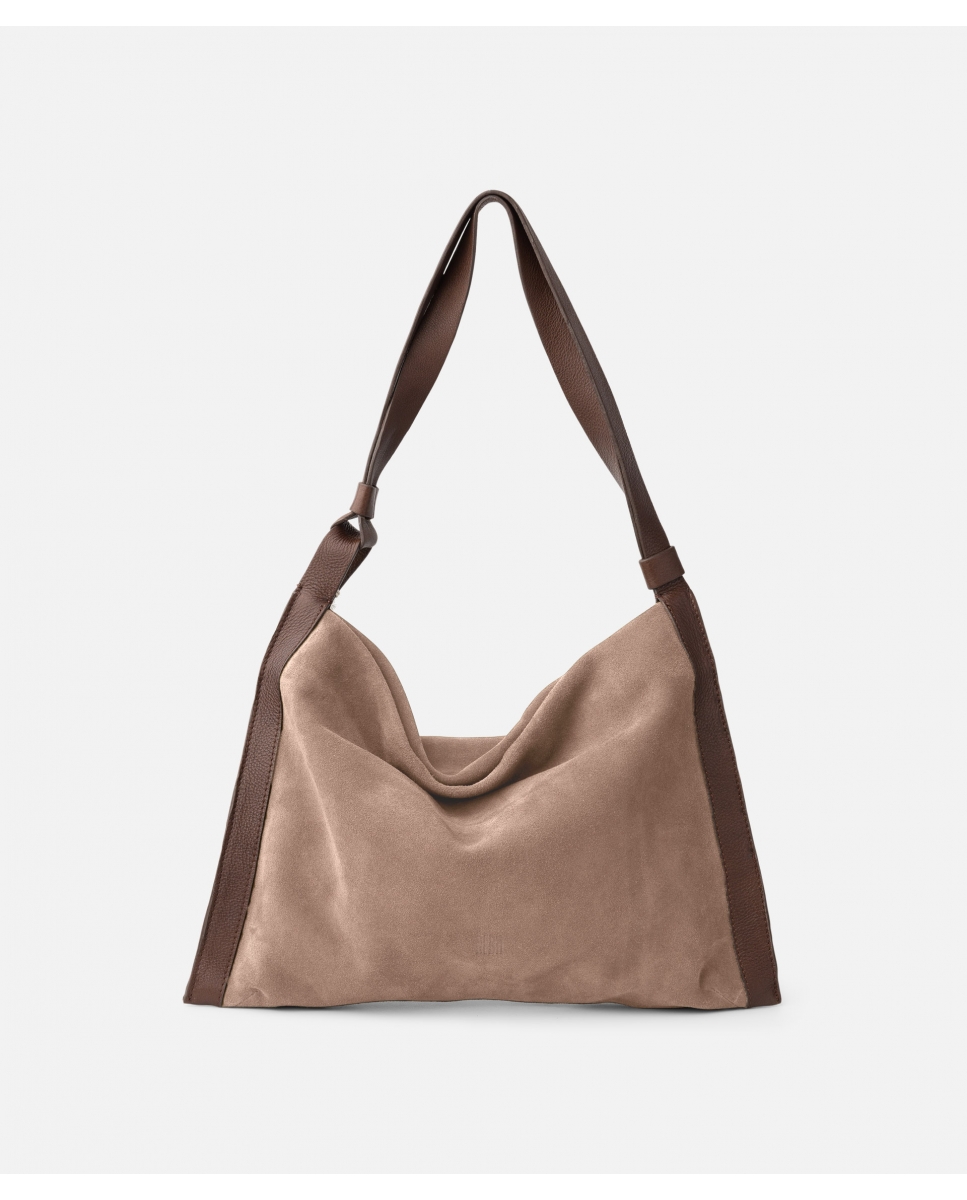 Hobo de serraje hidrofugado (repelente al agua). Asa de hombro. Cierre con cremallera. Bolsillos internos. Forro de algodón.